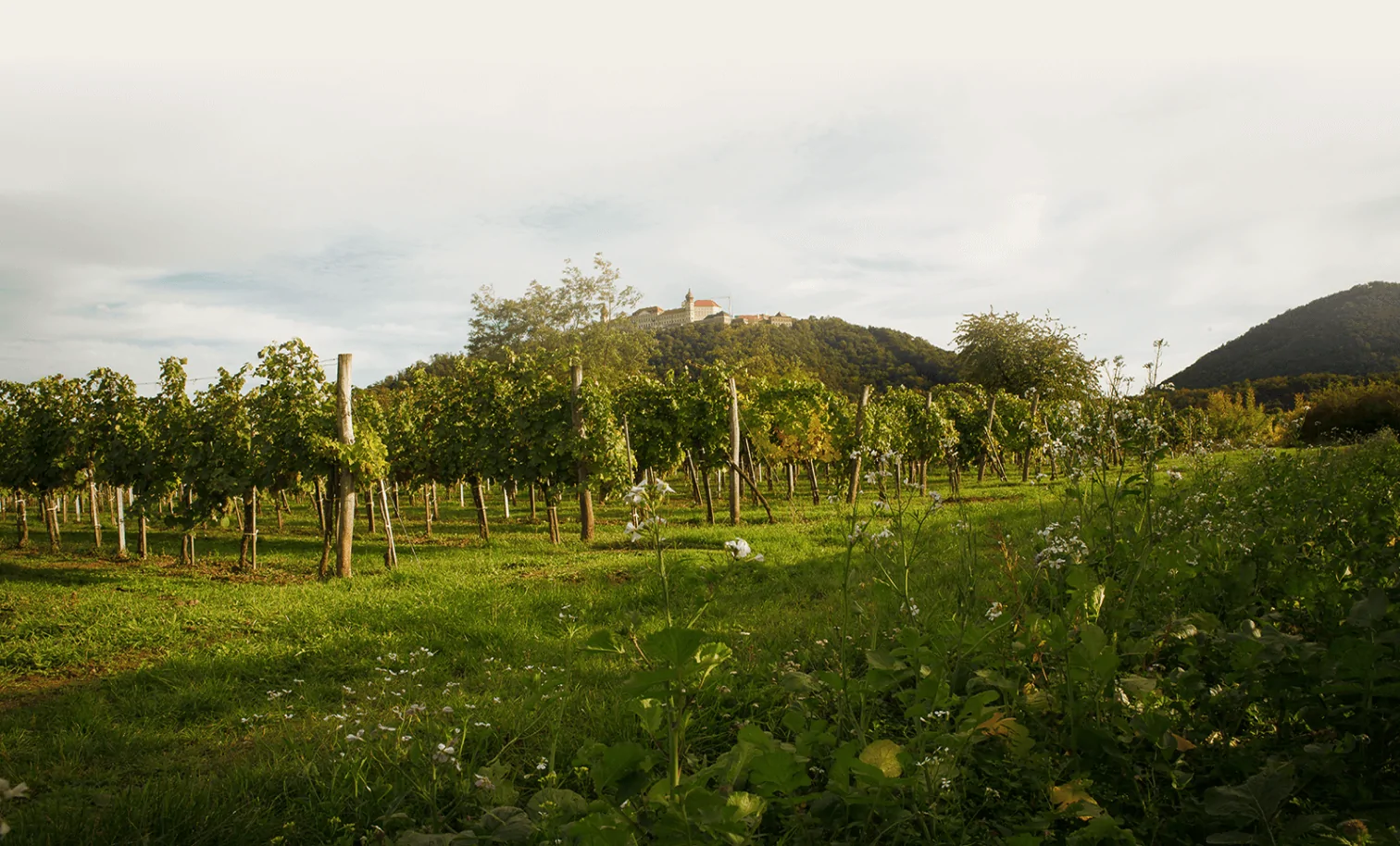 Vom Schneiden der Reben im Winter, der Pflege der Rebstöcke und des Bodens im Frühjahr und Sommer bis zur Handlese der reifen Trauben im Herbst — im Einklang mit der Natur zu arbeiten ist der Grundstein für die Entstehung charaktervoller Weine.